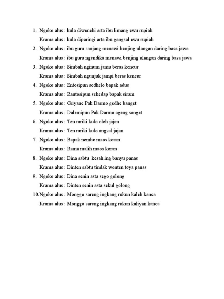 Bahasa Ngoko Alus : Tulisna 5 Tembung Kang Ana Ing Pacelathon Kasebut Banjur Tembung Tembung Kasebut Golekna Basa Ngoko Lugu Ngoko Alus Krama Lugu - Ngoko lugu, ngoko alus, krama lugu, dan krama alus.