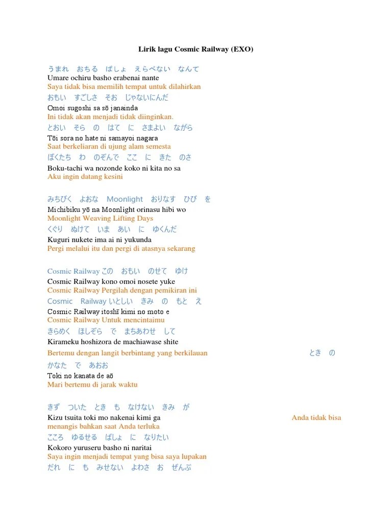 Lirik lagu cosmic railway exo kanji, romaji dan terjemahannya by _mithalaras. Exo merilis album jepang pertama mereka countdown pada . (chen leads) cosmic railway kono omoi nosete ike (chen leads) cosmic railway itoshī kimi no moto e~ kirameku hoshizora de machiawase shite | smule social singing karaoke app. Ja nai n da t?i uch?